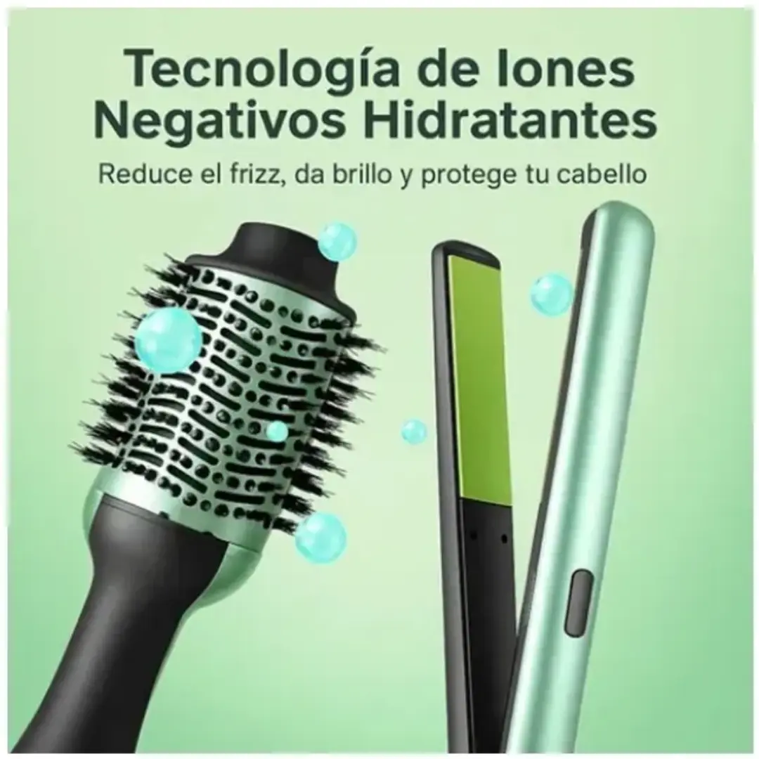 El cepillo eléctrico de pelo te ofrece una experiencia de secado suave, mientras que la plancha es perfecta para lograr un acabado liso y brillante. Ambos dispositivos trabajan en armonía para brindarte un look profesional desde la comodidad de tu hogar. Cada herramienta ha sido cuidadosamente elaborada para garantizar un rendimiento óptimo y una excelente durabilidad.