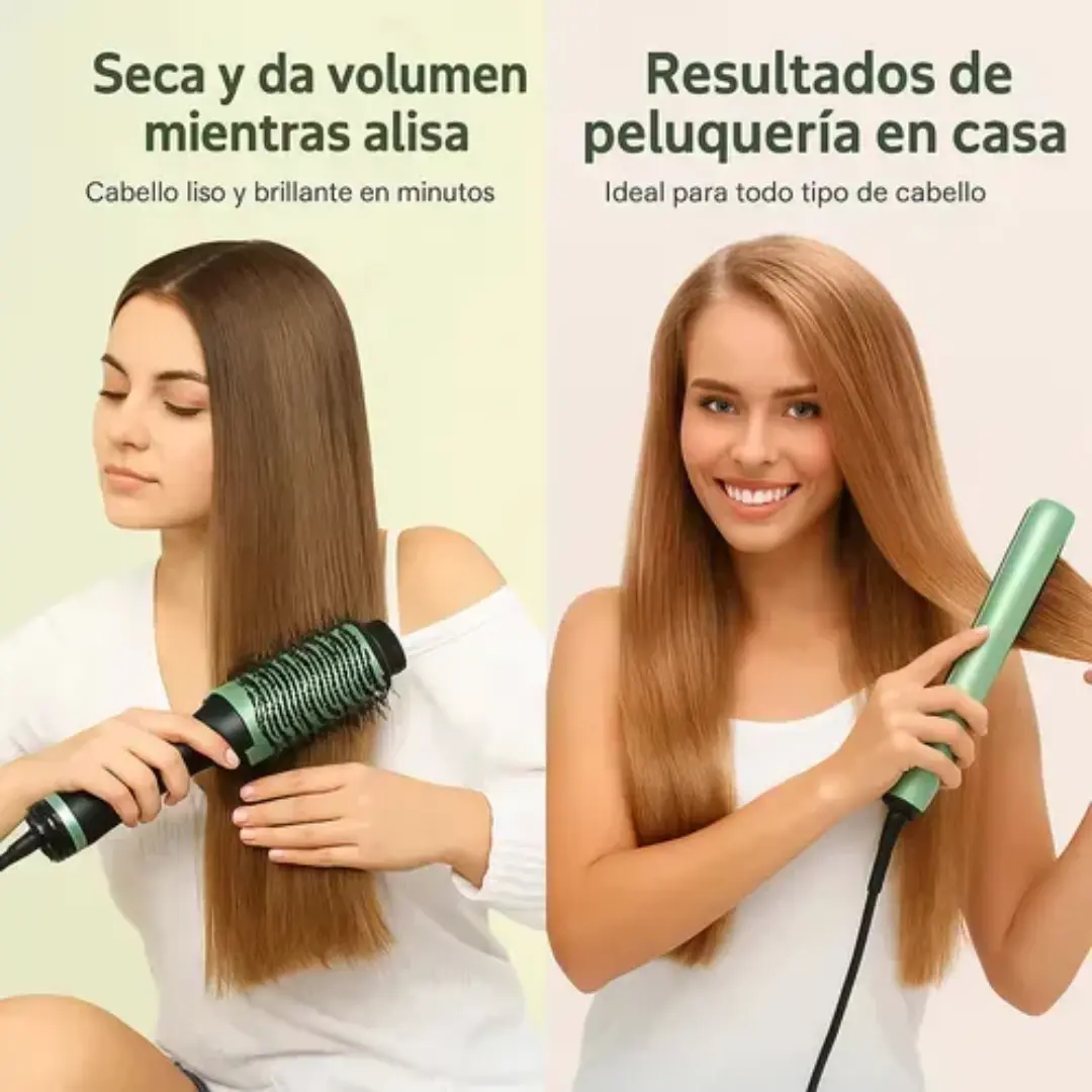Perfecto para el uso diario o para ocasiones especiales, este combo se adapta a diferentes tipos de cabello y estilos. Con un diseño ergonómico, cada pieza permite un fácil manejo y una experiencia de uso placentera. Mantén tu cabello radiante y saludable con un solo producto que reúne lo mejor de dos mundos.