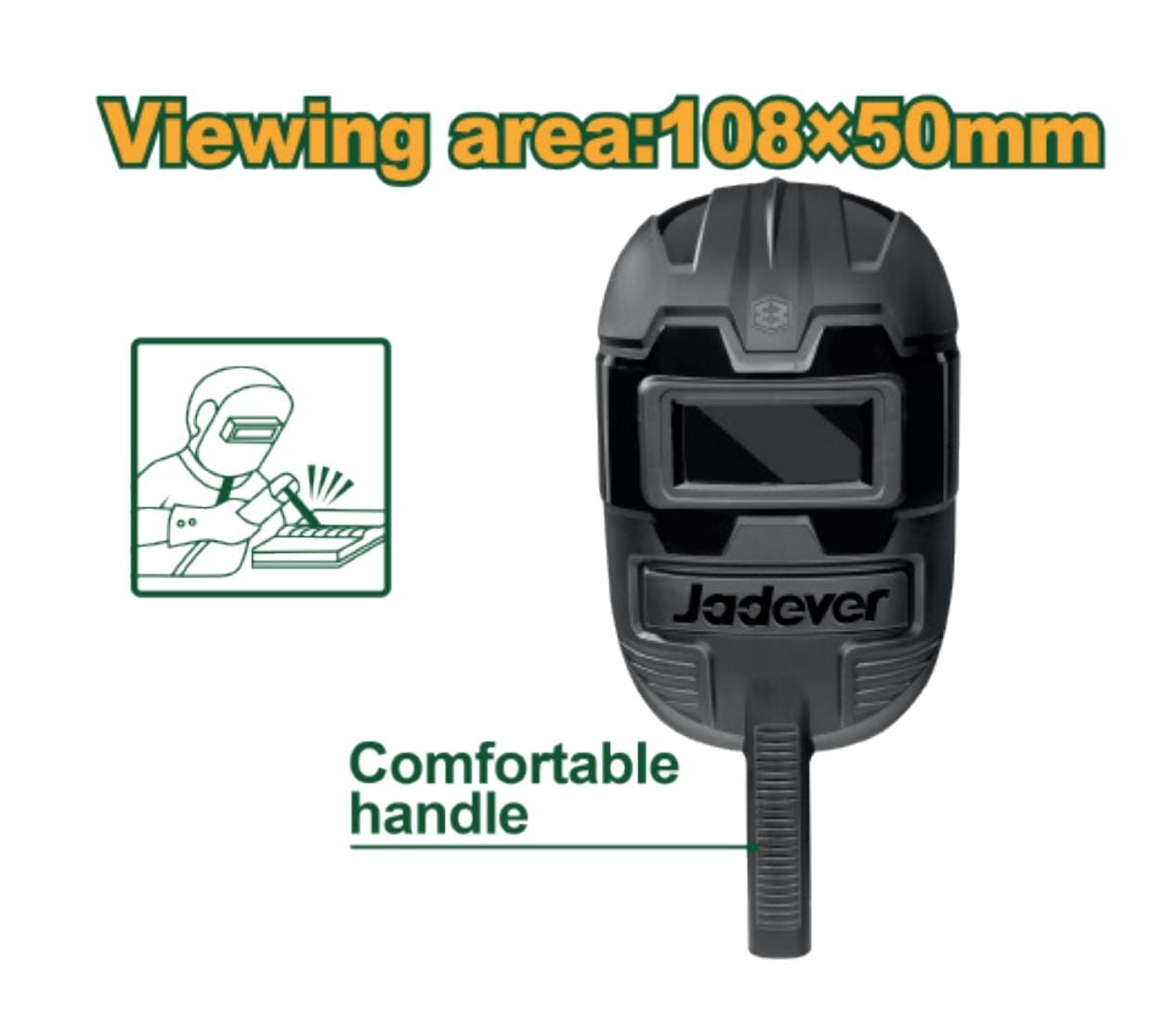 Incluye un vidrio de soldadura de 108x50x3mm, ideal para protección ocular.