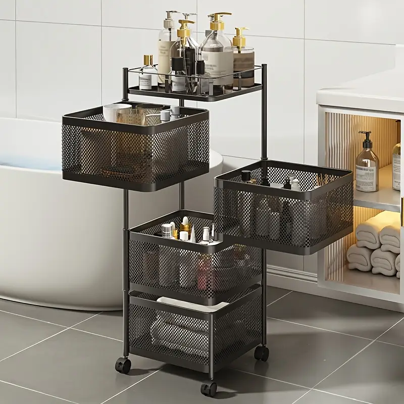 Diseño giratorio: Permite un acceso fácil a los artículos desde cualquier dirección, optimizando el espacio y la organización.