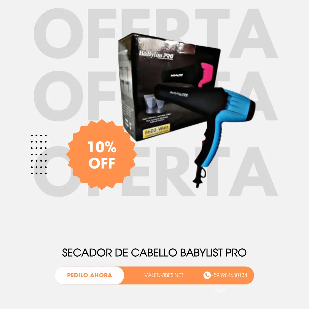 El Secador de Cabello BABYLISS PRO combina tecnología avanzada con un diseño ligero y compacto, permitiéndote obtener un acabado profesional sin dañar tu melena.