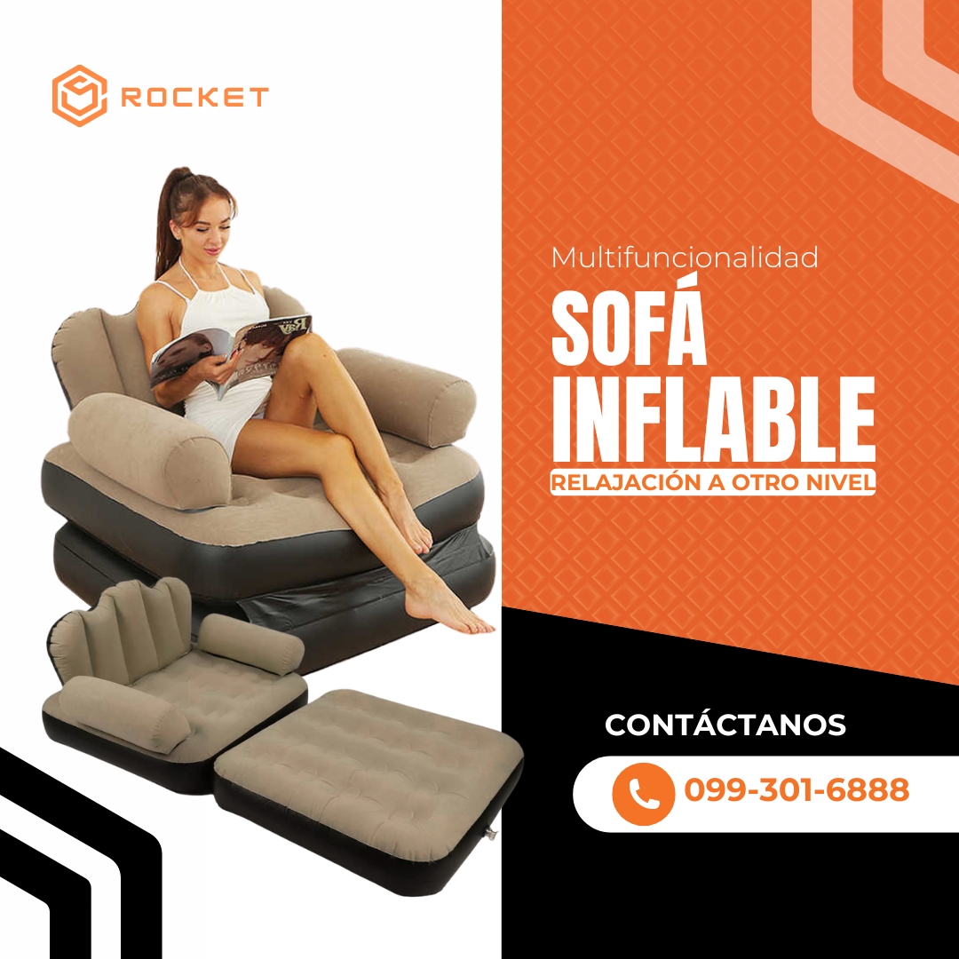 Descubre el sofá inflable multifuncional que combina diseño moderno, practicidad y confort. Perfecto para interiores, exteriores, visitas inesperadas o días de relax.