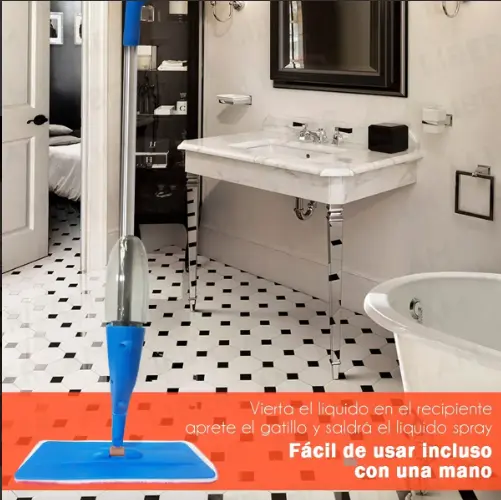 El Trapeador con Rociador Spray es ideal para limpiar pisos en segundos: rociá, pasá y listo. Su diseño permite usarlo con cualquier tipo de solución de limpieza, alcanzando resultados impecables en cerámica, porcelanato, madera, vinil y más. Ligero, práctico y eficiente, se convierte en la herramienta indispensable para un hogar impecable todos los días.