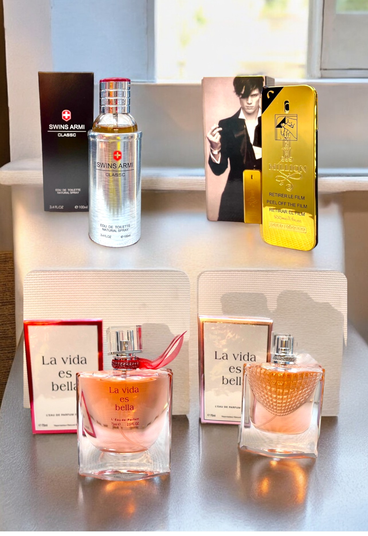 Adquiere cuatro perfumes de lujo a un costo significativamente reducido, una oportunidad única que combina calidad con economía. ¡No dejes pasar esta oferta especial y lleva a casa fragancias exclusivas a un precio inmejorable!