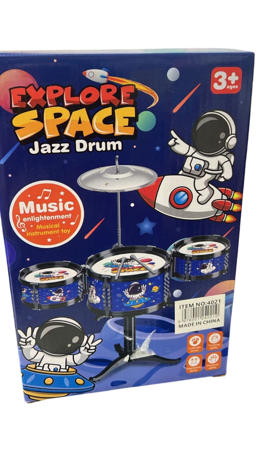 📦 Incluye: Tambores, platillo, y baqueta