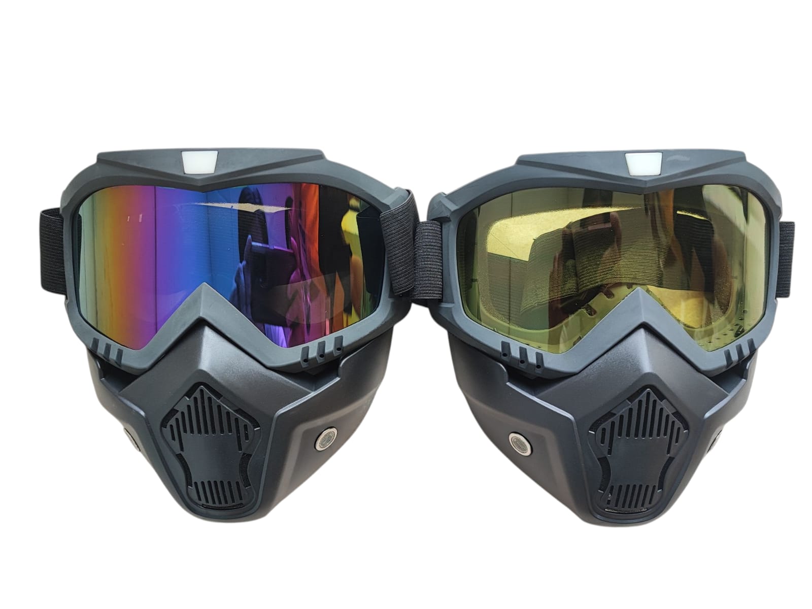 Estas características hacen que las caretas con gafas sean una pieza esencial del equipo de seguridad para los motociclistas, los pilotos de motocross y los ciclistas.