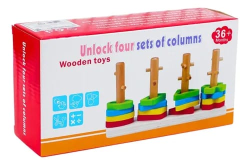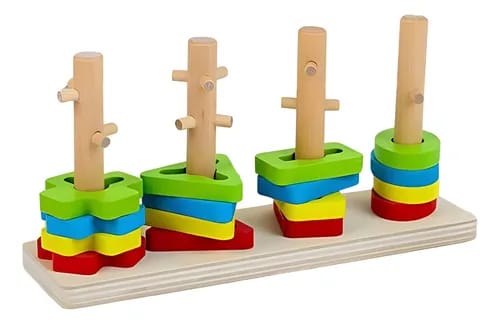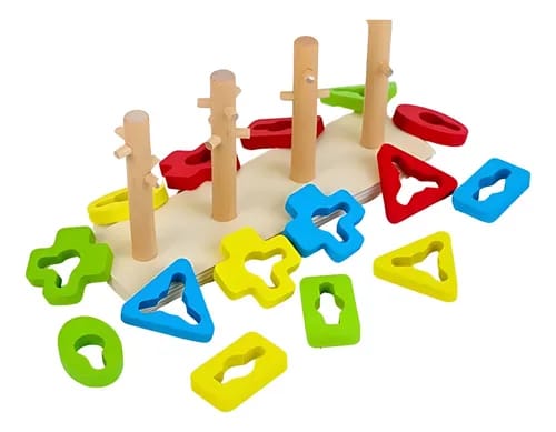 🧠🪵 Juguete Didáctico de 4 Figuras – Desarrollo y Diversión en Cada Encaje