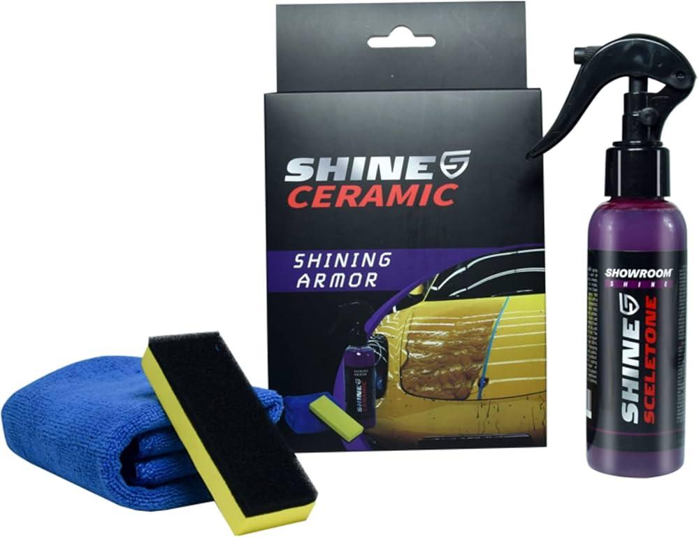 Devuélvele a tu vehículo el brillo de recién salido del concesionario con Shine, el spray cerámico de protección hidrofóbica diseñado para neumáticos, metales, cromo y otras superficies automotrices. Su fórmula avanzada crea una capa protectora que repele el agua, realza el color y mantiene un acabado brillante y duradero.