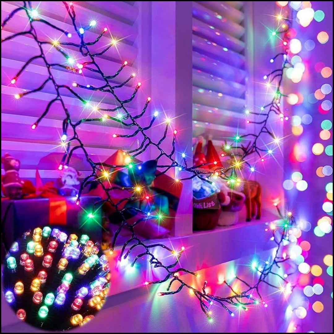 Efecto de Múltiples Puntos de Luz: El diseño de "alambre de hadas" con ramificaciones permite que los focos se dispersen creando un efecto visual denso y muy brillante.