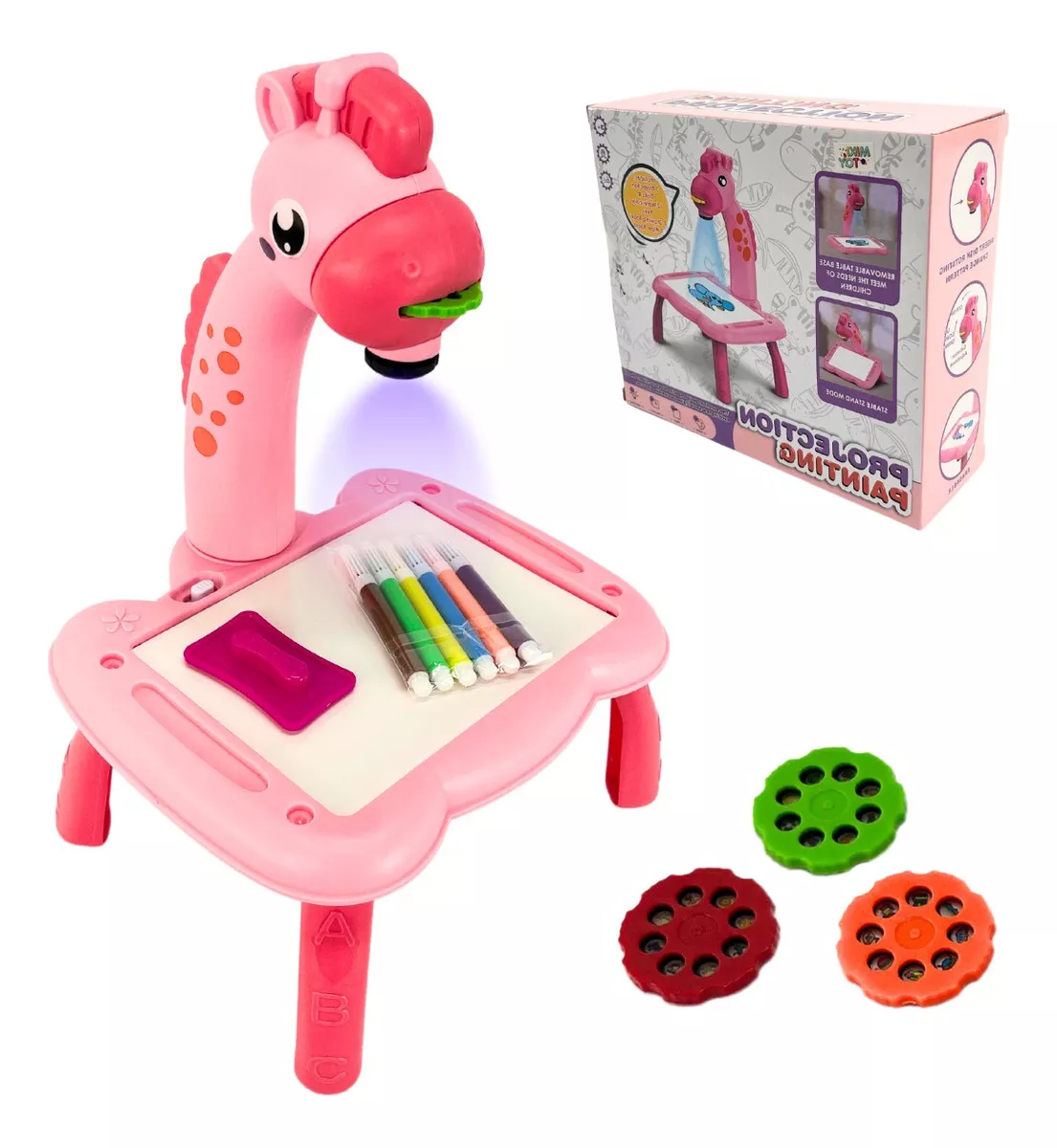 • 🌈 Proyector integrado: Proyecta imágenes para que los niños dibujen con facilidad.