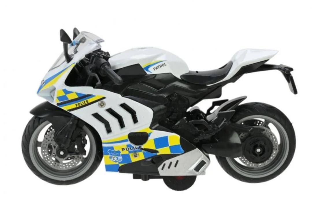 Esta Moto Police de juguete tiene un diseño robusto y realista, perfecta para juegos de aventura, persecuciones y misiones de rescate. Ideal para niños fanáticos de la policía y las motos.