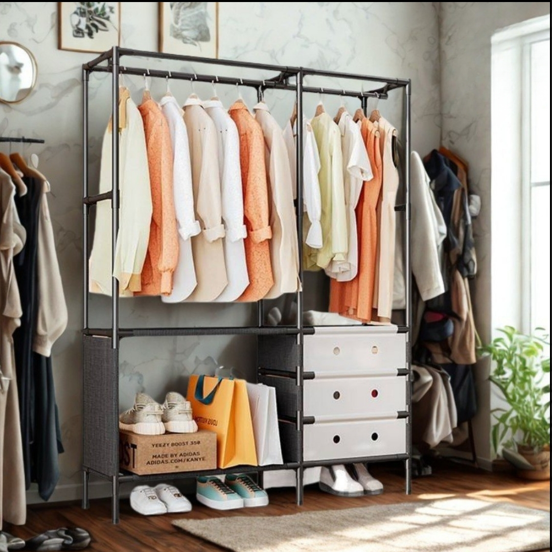 Optimiza tu habitación con nuestro Organizador de Ropa y Zapatos de Alta Capacidad. Diseñado para ofrecerte un sistema de almacenamiento abierto que combina estilo moderno con una organización impecable. ¡Todo lo que necesitas en un solo lugar!