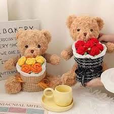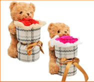 Presentación de Regalo: El ramo viene envuelto en papel coreano o malla de floristería de lujo, con un diseño que complementa perfectamente el tamaño del peluche.