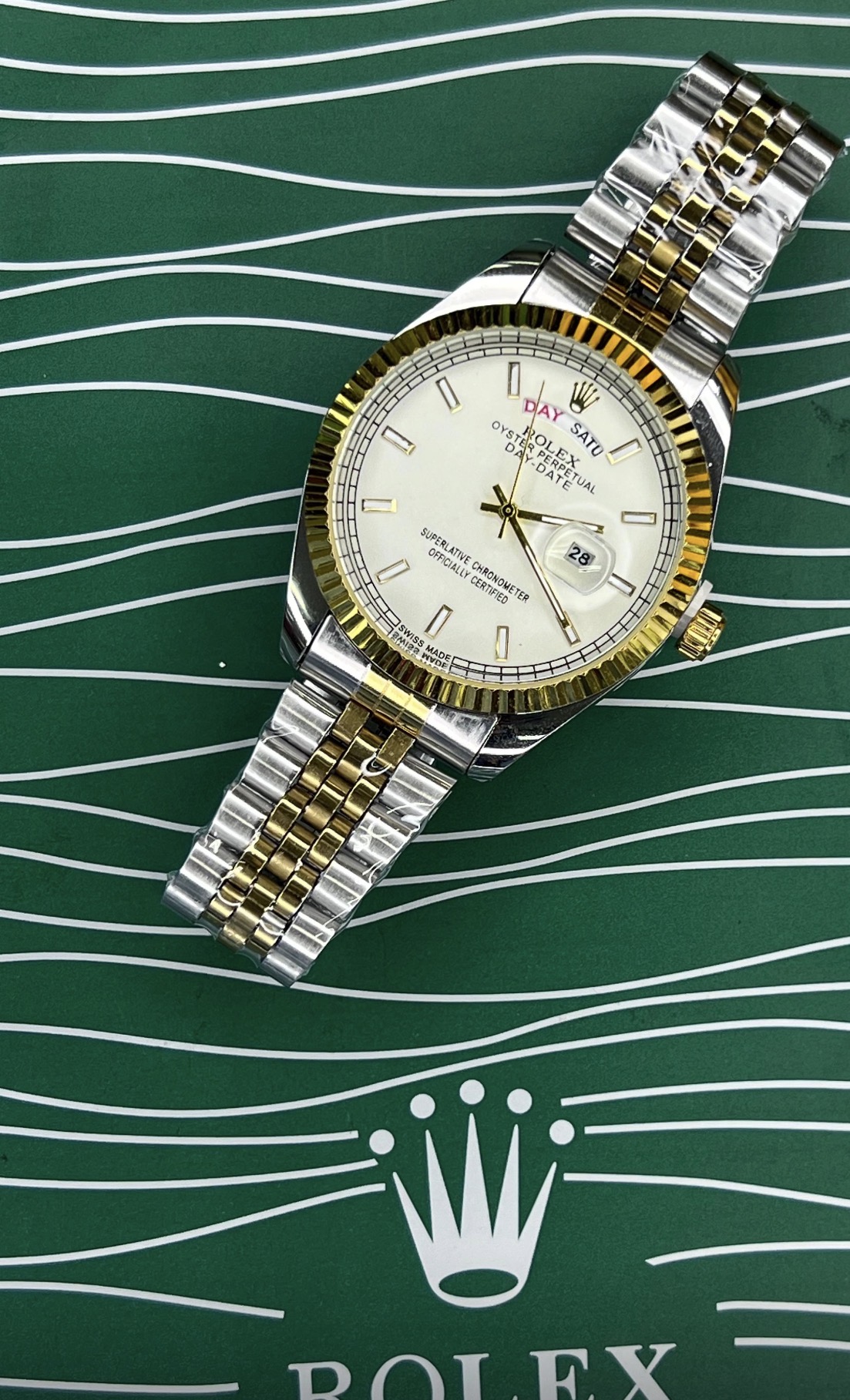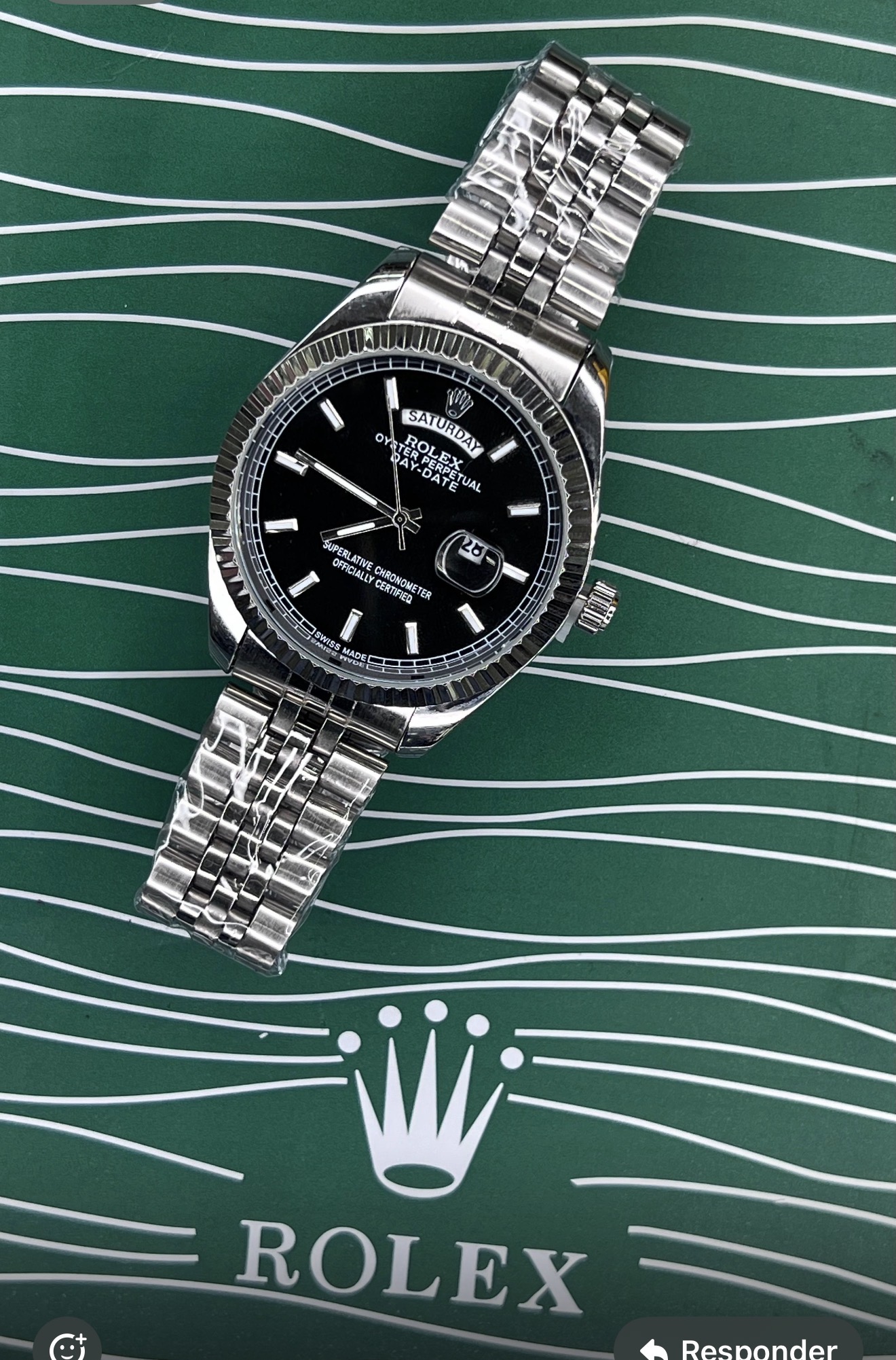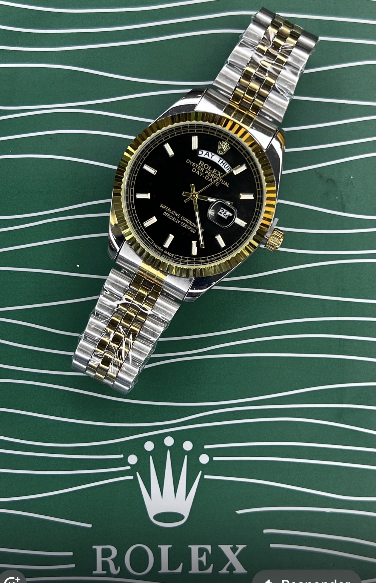 Dale un toque de distinción a tu estilo con este reloj tipo Day-Date, diseñado para lucir elegante en cualquier ocasión. Su esfera detallada incluye marcador de fecha y día, ofreciendo funcionalidad y presencia en una sola pieza.