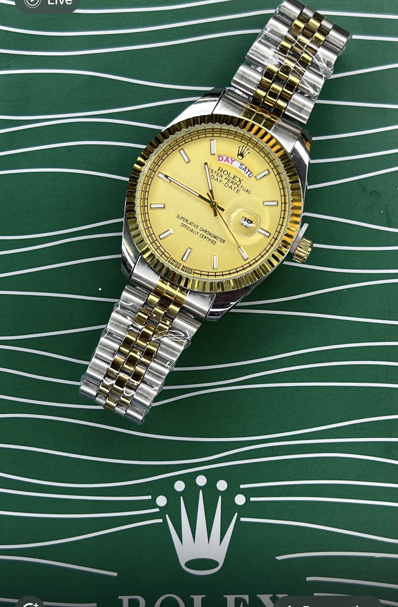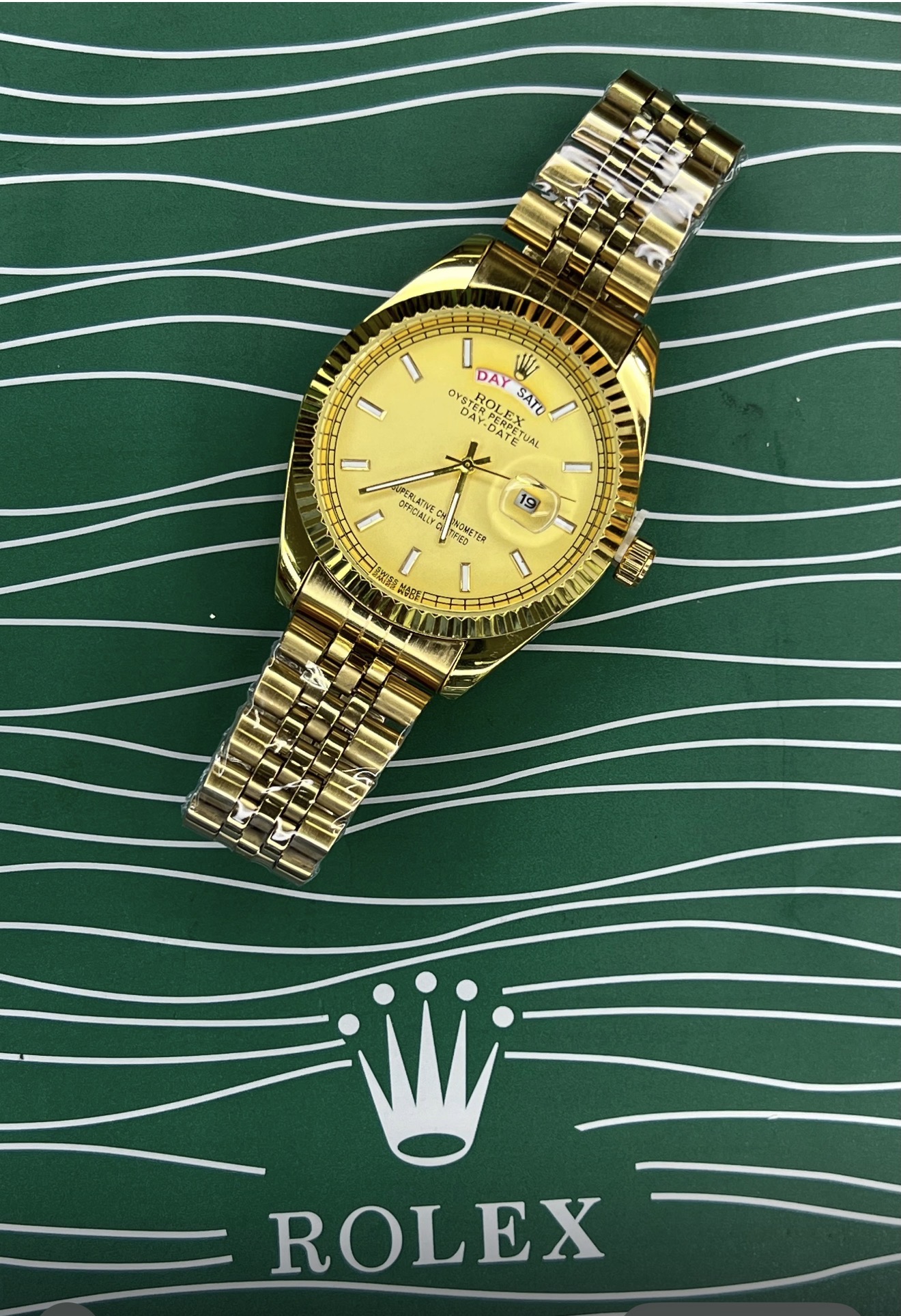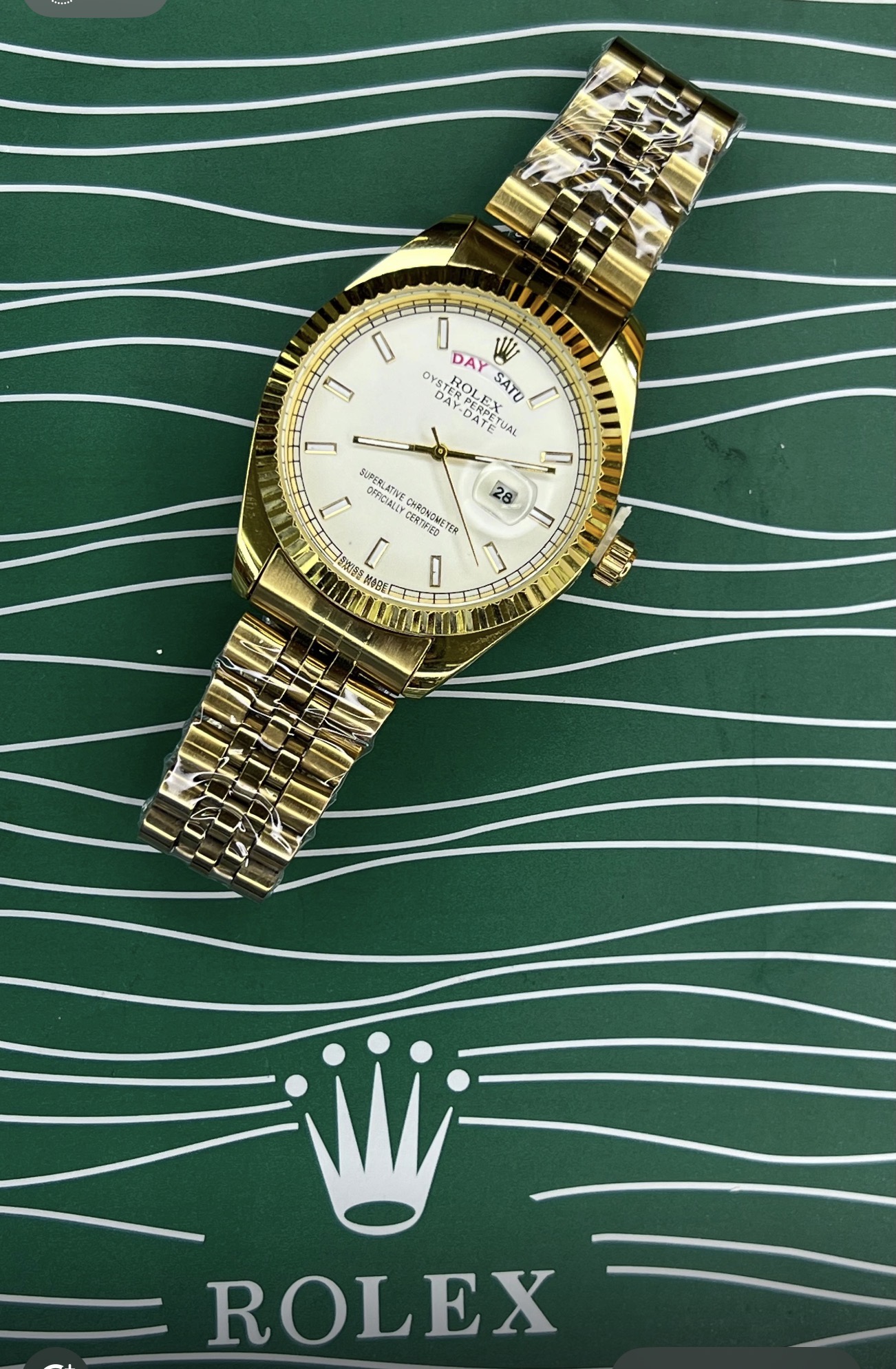 Dale un toque de distinción a tu estilo con este reloj tipo Day-Date, diseñado para lucir elegante en cualquier ocasión. Su esfera detallada incluye marcador de fecha y día, ofreciendo funcionalidad y presencia en una sola pieza.