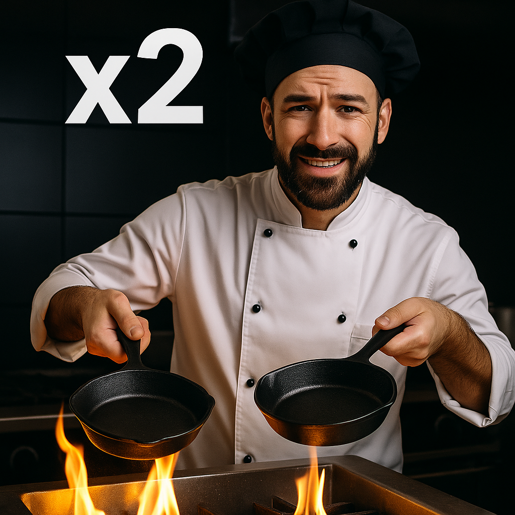 Disfruta la potencia y el sabor único del hierro fundido con este combo de dos sartenes de 20 cm.