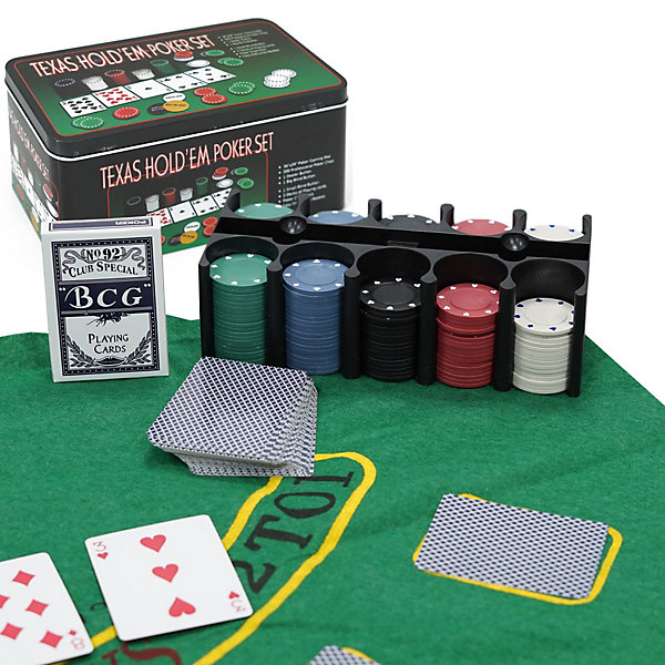 Incluye un completo set de 200 piezas: 200 fichas, 2 barajas de cartas, tapete y botones de juego. Las fichas son de primera calidad, con un peso y tacto satisfactorios para una experiencia de juego auténtica. Viene en una elegante y resistente caja metálica para un almacenamiento y transporte seguros. Incluye un tapete de juego para convertir fácilmente cualquier superficie en una mesa de juego. Un kit versátil apto tanto para Texas Hold'em como para Blackjack.