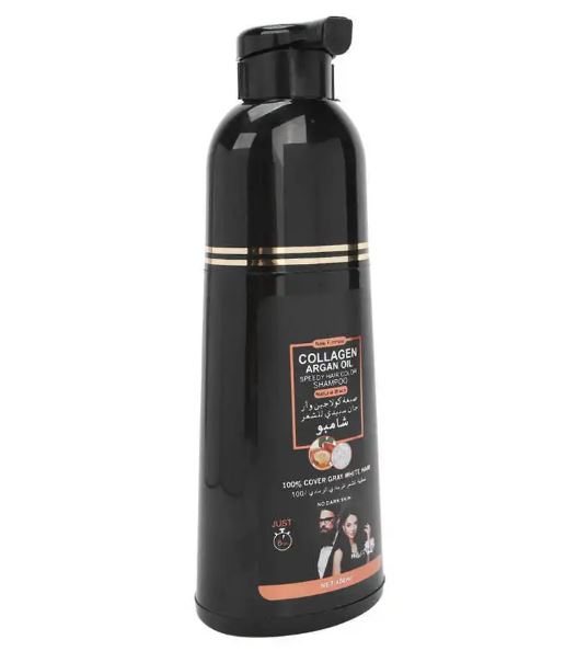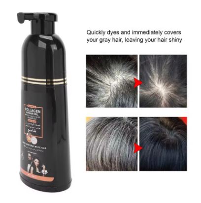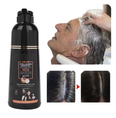 Shampoo tinte para canas color negro. Colágeno Aceite de argán Champú para teñir el cabello Champú para cubrir cabello gris y blanco (400ml)