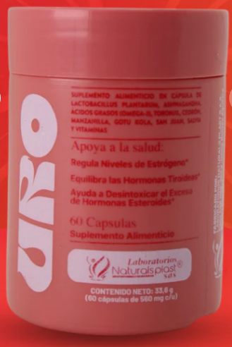 "Uro Naturalsplas" hace referencia a las cápsulas Uro Naturalsplast, un suplemento alimenticio diseñado para la salud del sistema urinario y el bienestar femenino.