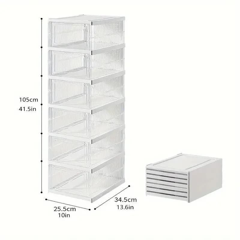 Amplia aplicabilidad: la caja organizadora apilable se puede utilizar para almacenar muchas cosas, como zapatos, sombreros, bolsos, libros, juguetes, manualidades, etc. Perfecto para armarios, entrada, dormitorio, baño, lavandería, sala de manualidades, oficinas, sala de juegos y garaje; no solo ahorra espacio, sino que hizo que tu hogar se vea 100% mejor.